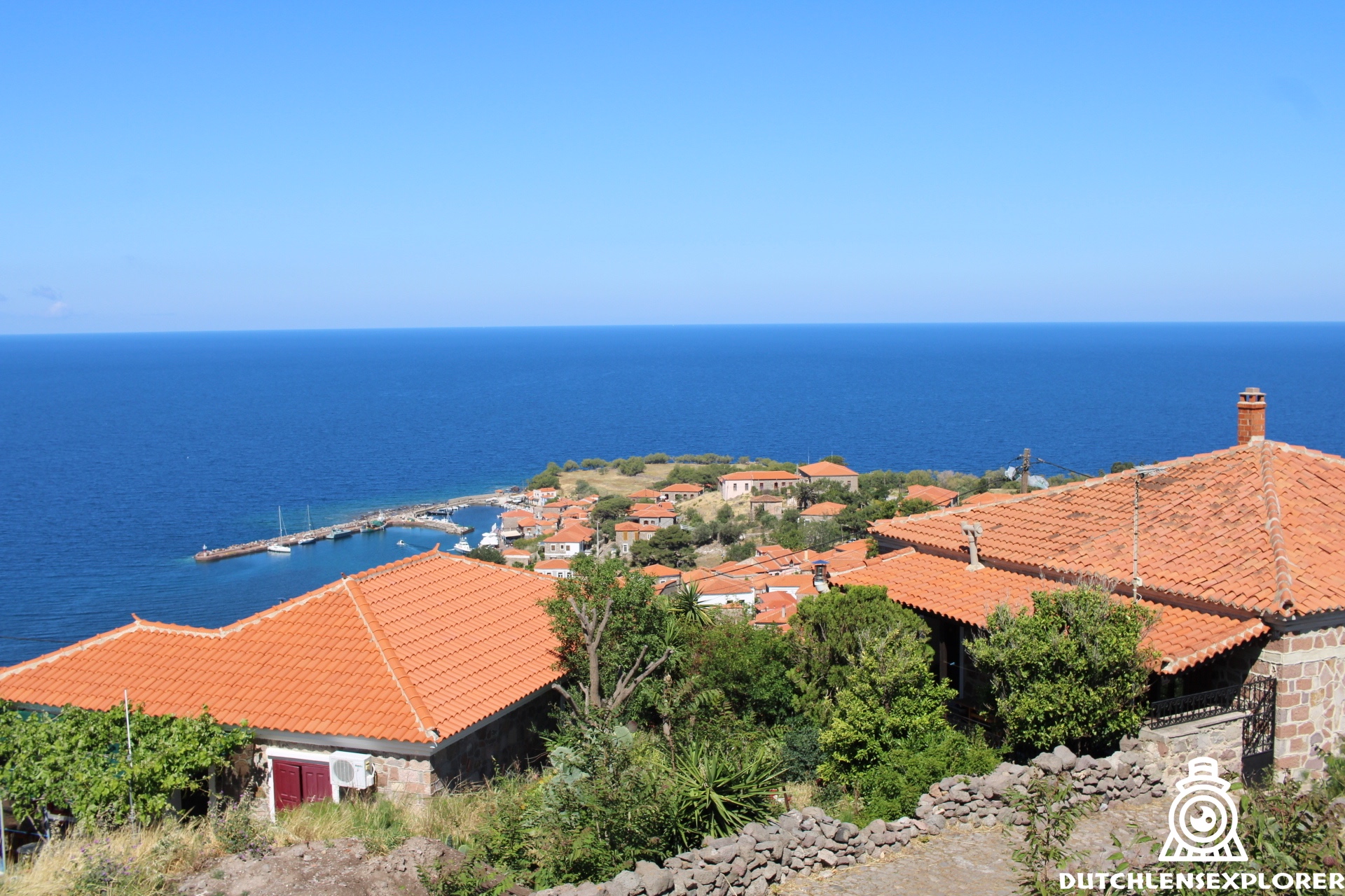 Soms kon ik tussen de huizen door ver kijken, tot aan de Turkse kust. Het licht viel prachtig op de daken en muren. De geur van bloemen en kruiden hing in de lucht.