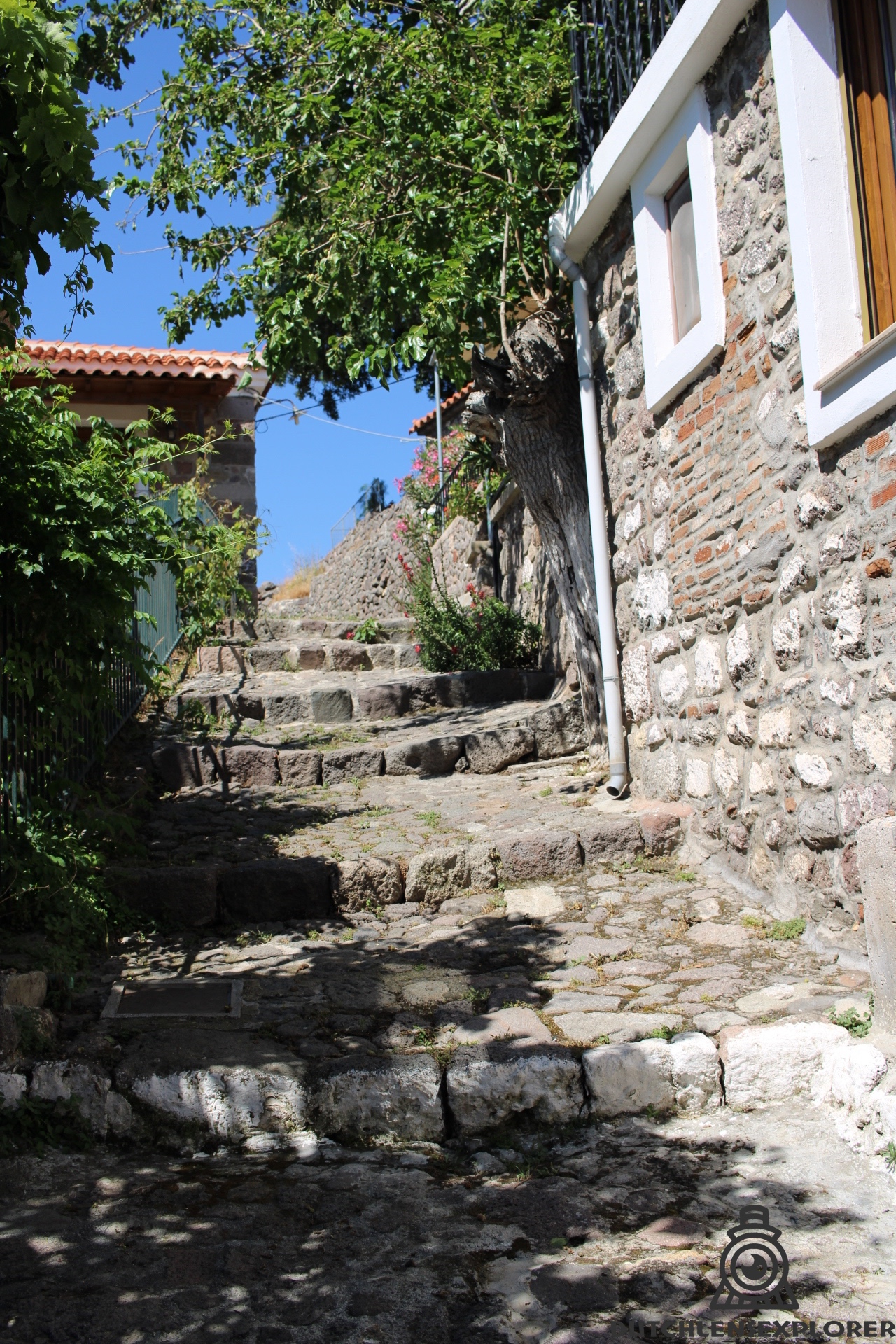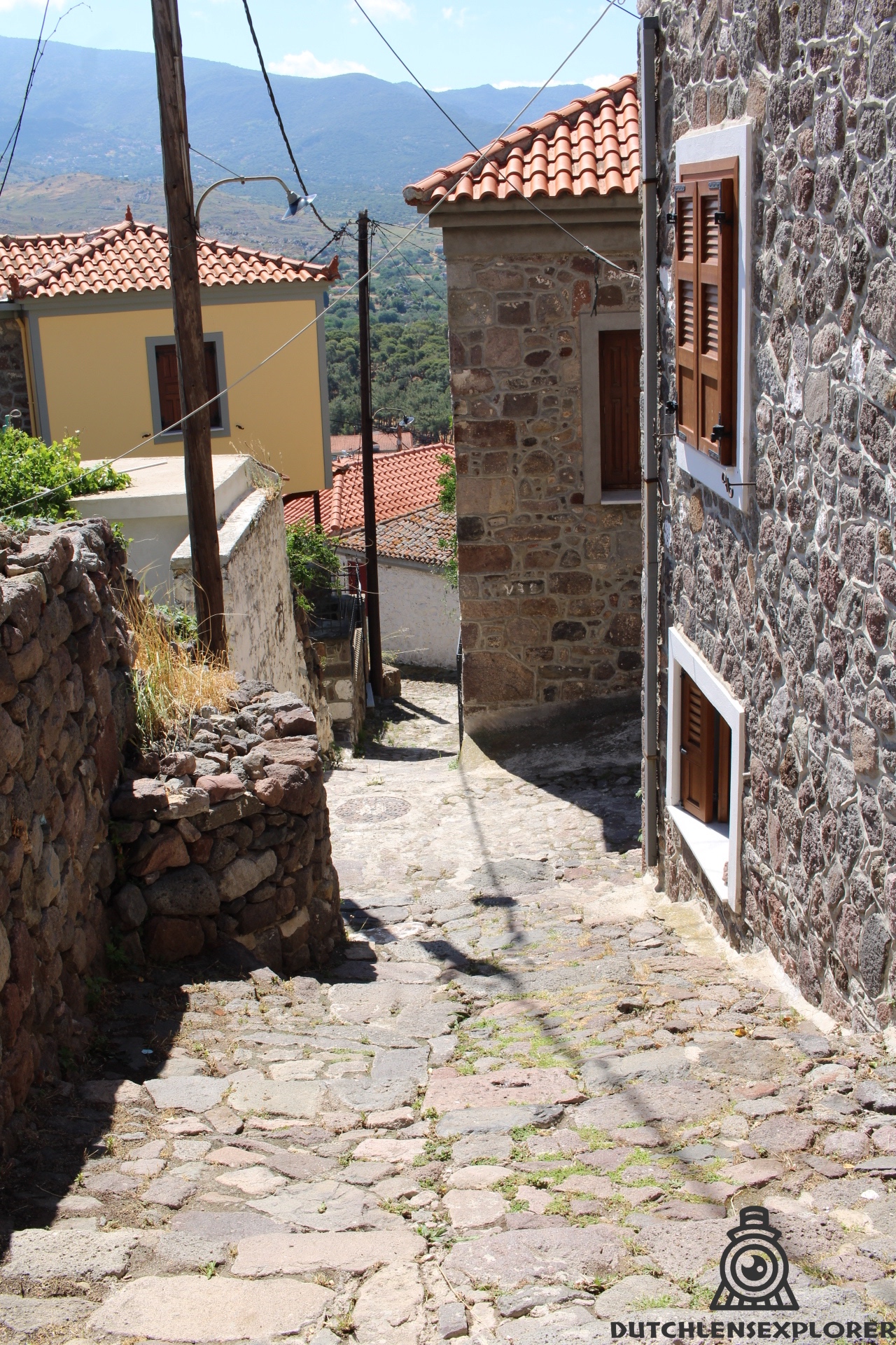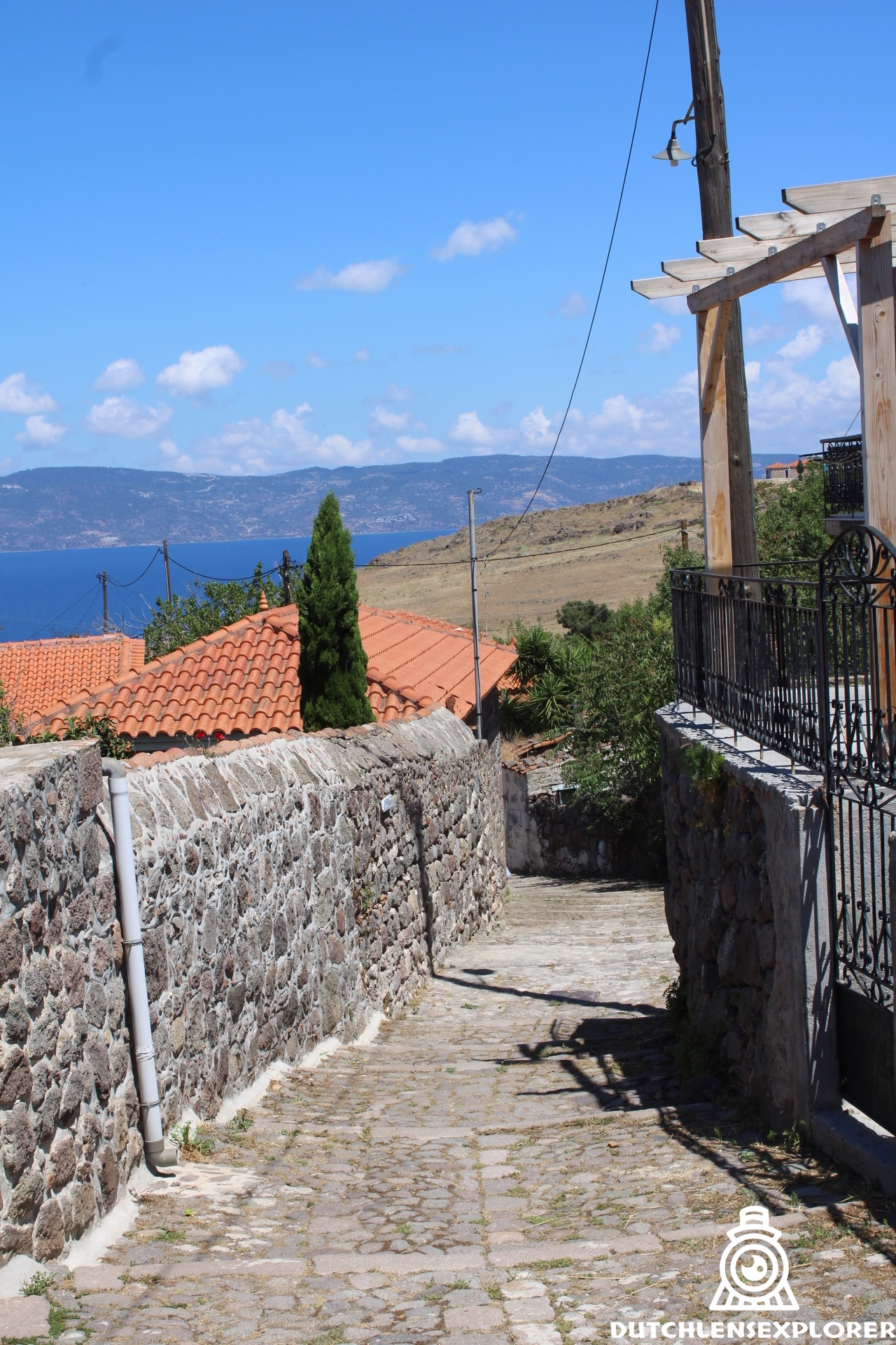 Vanochtend wandelde ik in Molyvos, vanaf de oude burcht bovenop de heuvel naar beneden, dwalend door de smalle straatjes. Het was nog vroeg en rustig. Alleen het geluid van vogels en een verre brommer vulden de lucht.