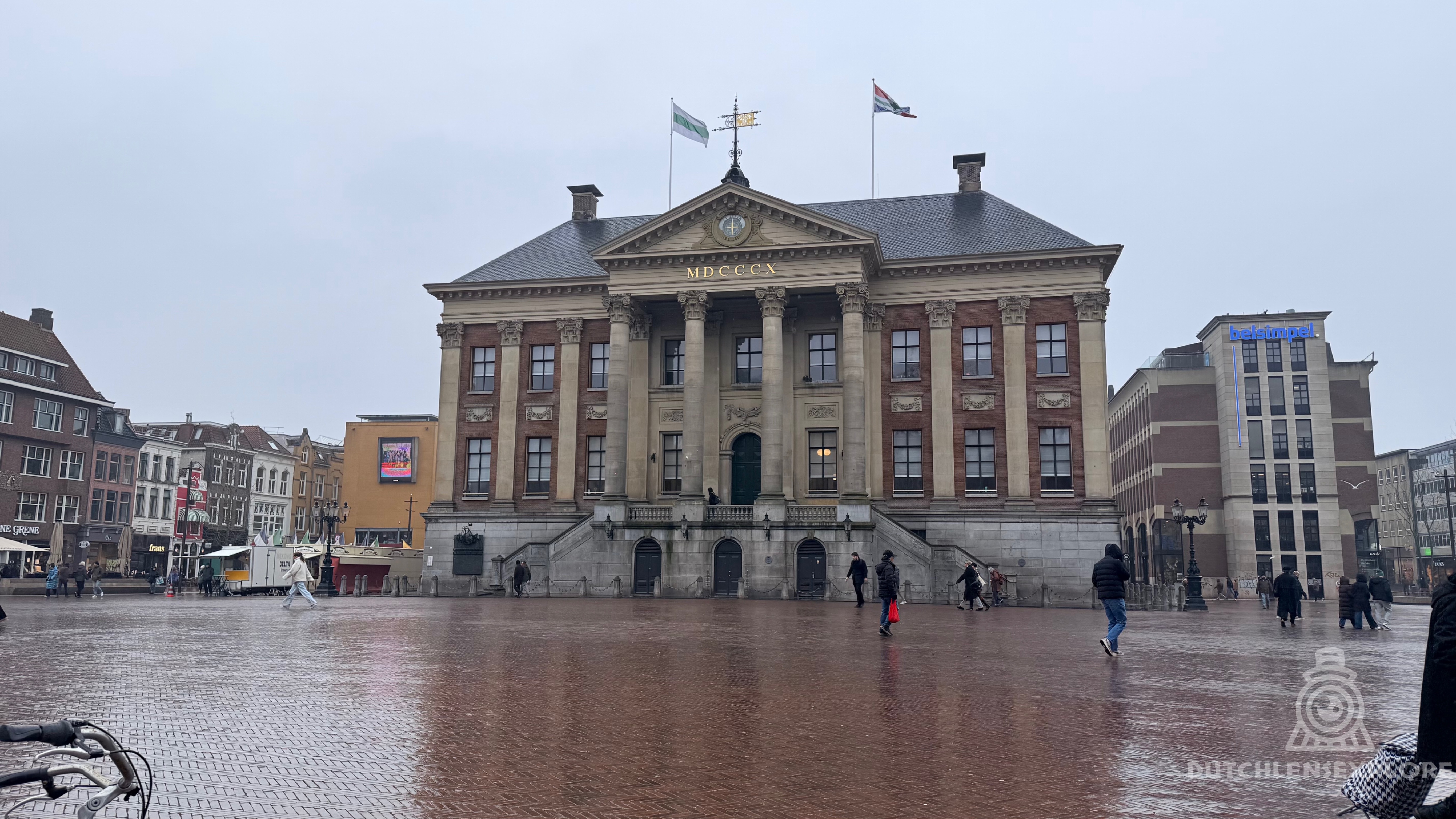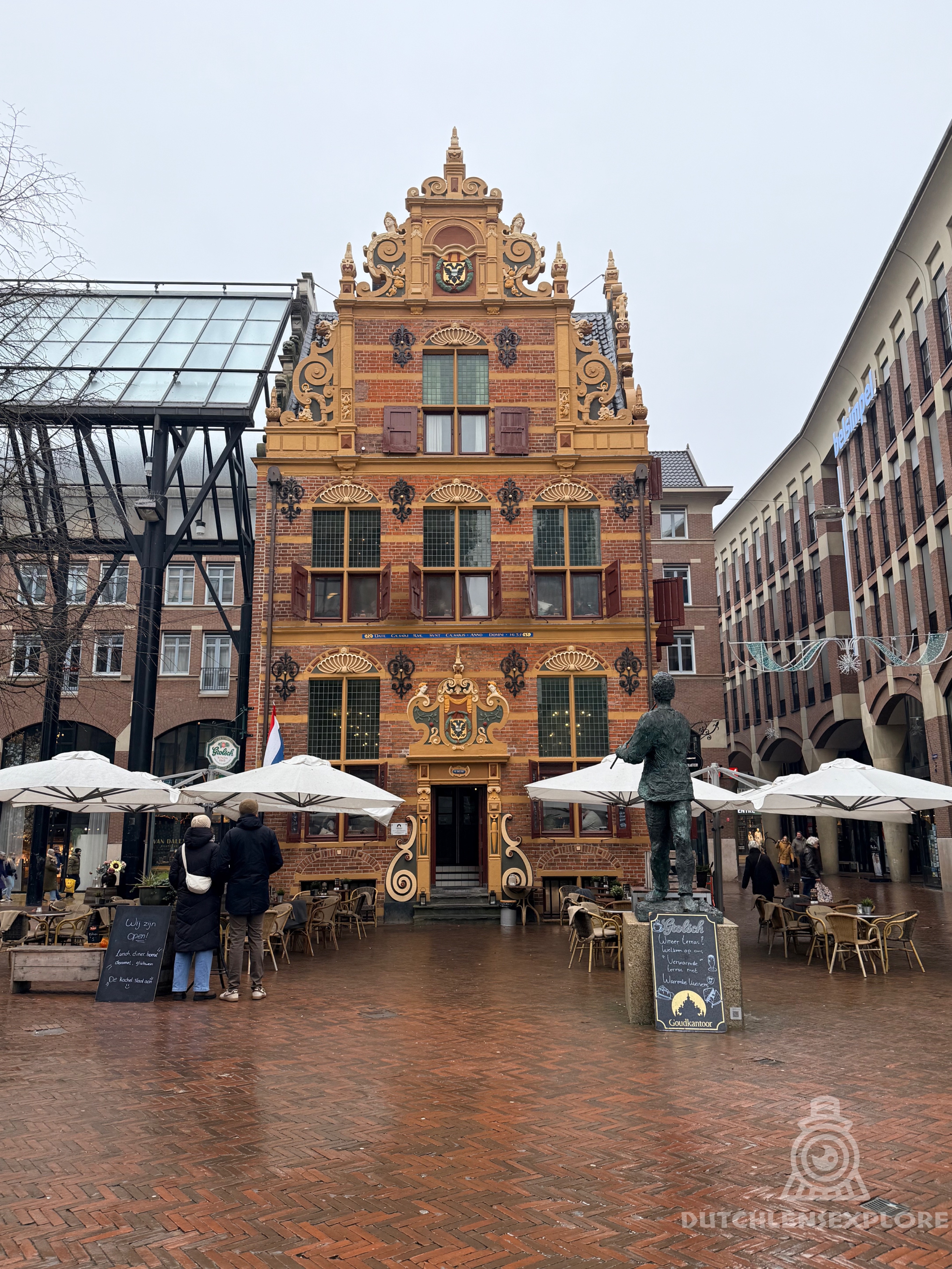 Buiten was het een ander kunstproject. Het weer had duidelijk geen zin in subtiliteit. Koud, mistig en nat, alsof de stad had besloten om zichzelf te vernissen. Regen, bevroren tegels en een soort onzichtbare glijbaan-modus stonden overal aan. Ik heb mensen zichzelf net zien redden met wilde armbewegingen, en hier en daar toch een elegante uitglijder gezien. Een soort moderne dans, maar dan ongepland.